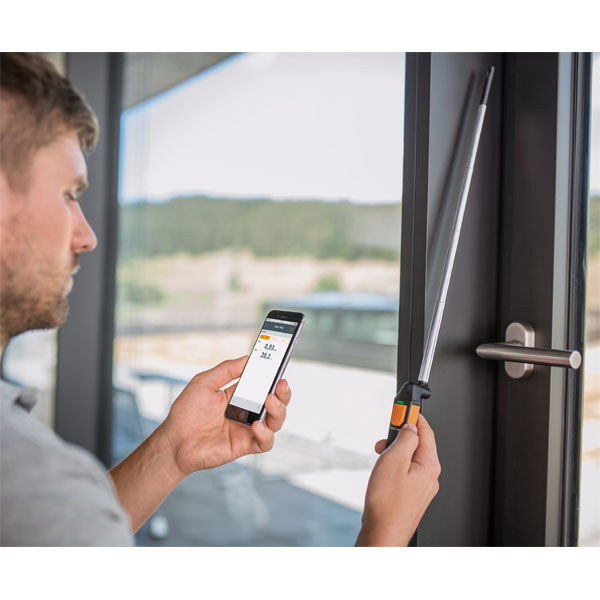 − Máy đo tốc độ gió testo 405i được trang bị thêm que đo dạng tele có thể mở rộng dài tới khoảng 400 mm giúp dễ dàng thực hiện các phép đo vận tốc trong đường ống.